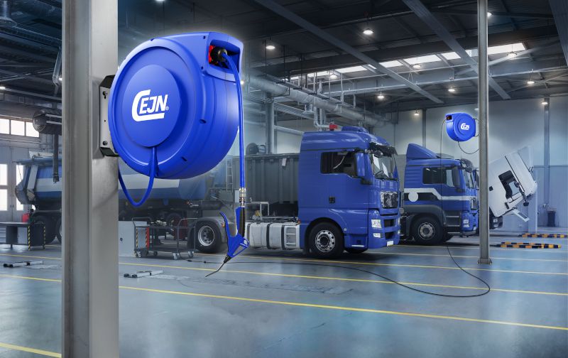 Im Fokus steht die neue Generation der CEJN SafetyReel G2-Aufroller. Der Schlauchaufroller ist sowohl für Druckluft- als auch für Flüssigkeitsanwendungen ausgelegt und bietet mit Schlauchlängen von bis zu 30 Metern einen deutlich erweiterten Arbeitsbereich. Ergänzt wird er durch leistungsstarke Kabelaufroller mit bis zu 25 Metern Reichweite für die sichere Stromversorgung – eine vielseitige Lösung für Werkstatt und Industrie.